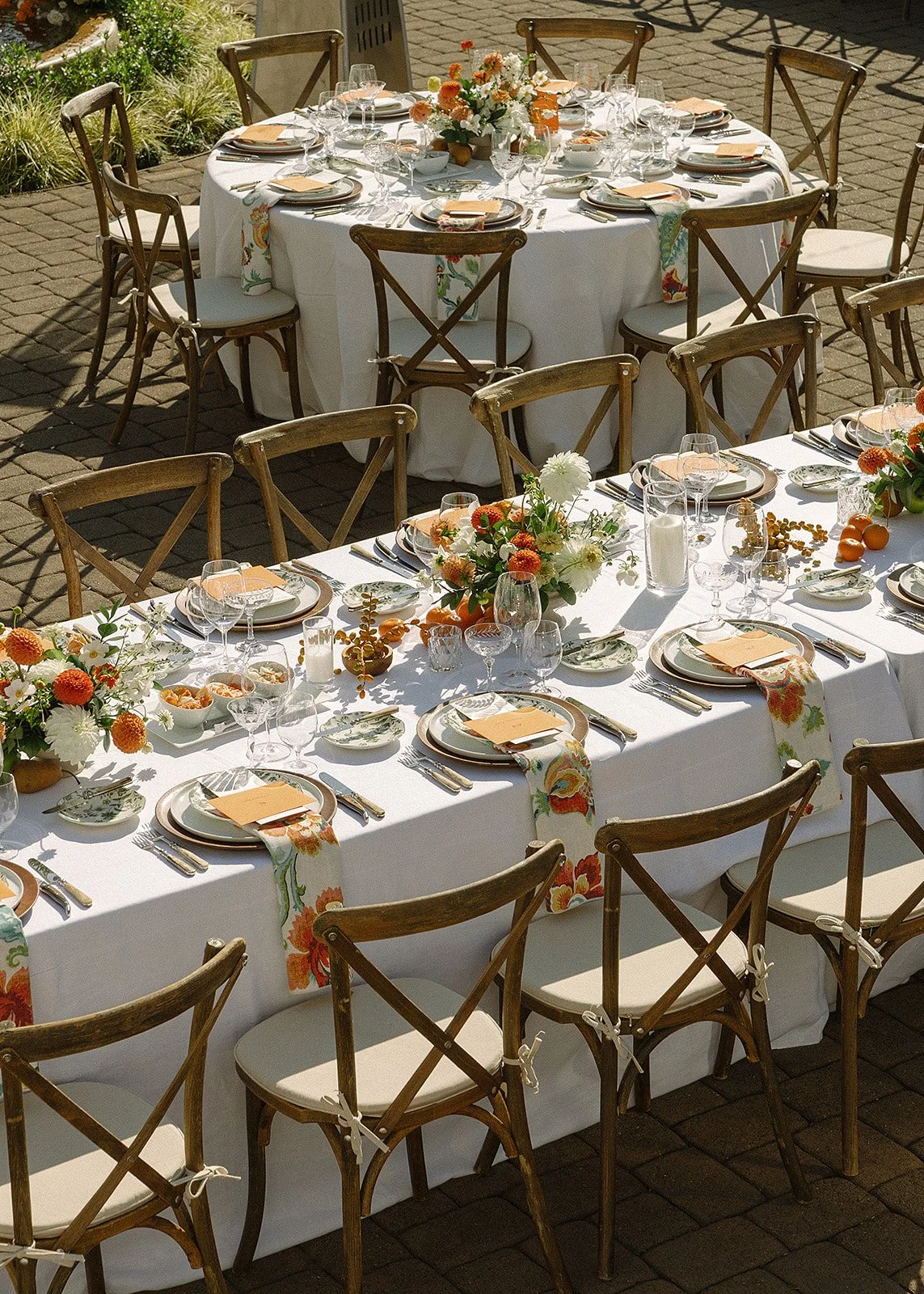 The design centered around a bold and playful love of Hermès orange, which became the signature pop of color throughout the day. Set against the natural greens of Black Walnut, the orange accents added warmth, energy, and a modern edge that made the overall aesthetic feel fresh and refined.