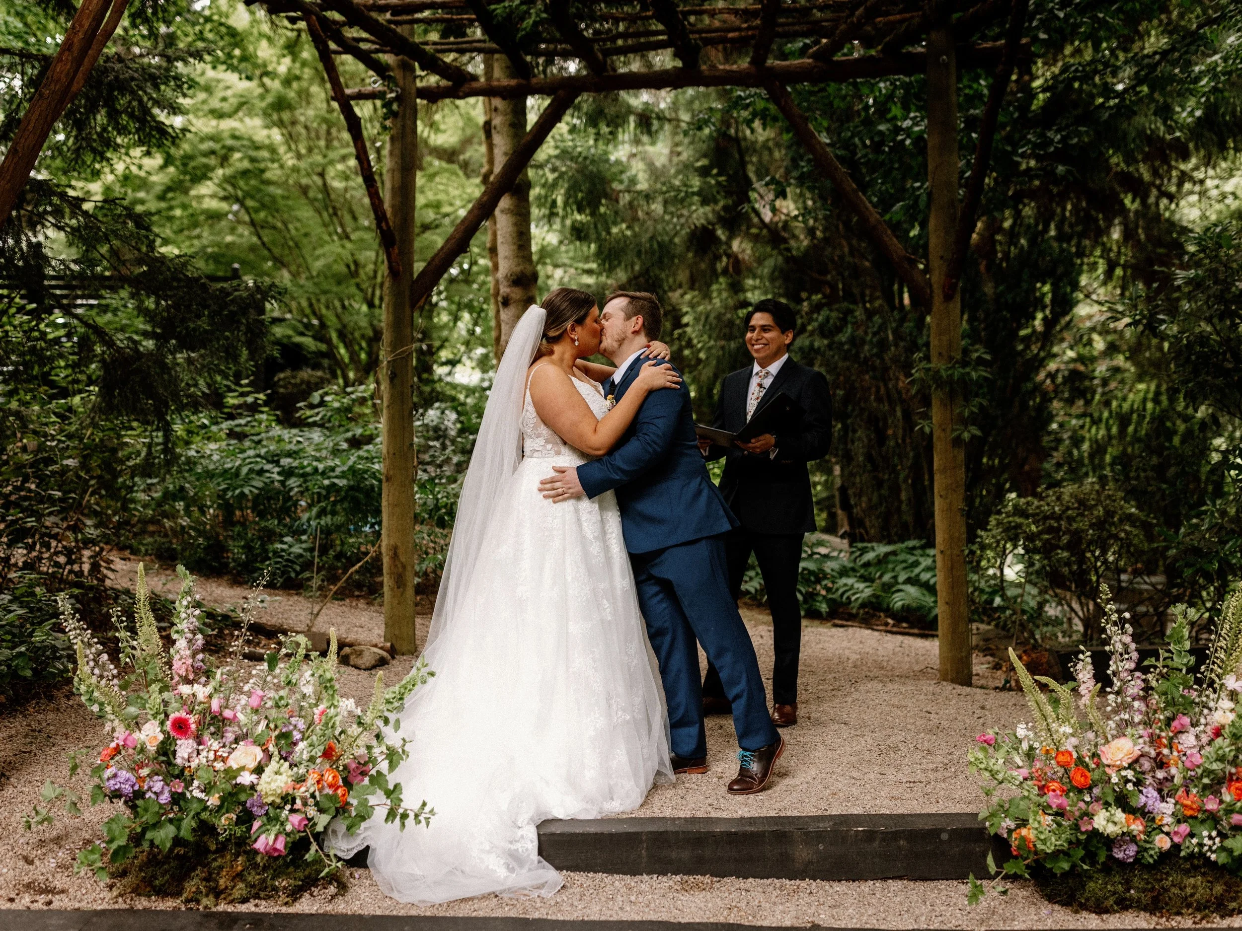 Meaghan and Nate are the kind of people that you can't help but smile when you're around them, so planning their wedding was a treat! The PNW sun came out for them at JM Cellars and everyone was excited to kick off the evening of festivities, even though the two had already tied the knot a year prior at the courthouse before a Maggie Rogers concert. It only made sense that Meaghan walked down the aisle to Love You for a Long Time by their favorite artist!