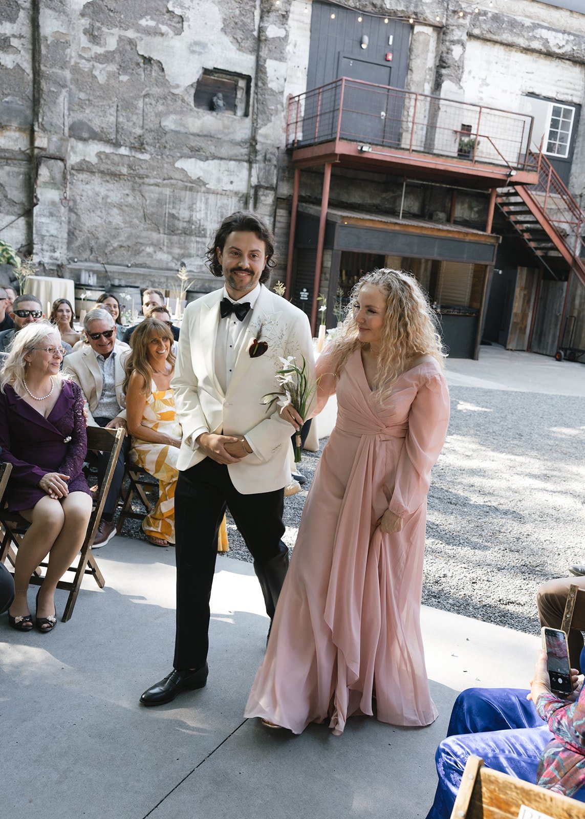 The brideβs brother officiated a moving ceremony, sharing stories of how Ali and Leviβs lives paralleled for years before finally crossing paths. Surrounded by whimsical florals from Wildflower Portland, the couple exchanged vows in a space that felt warm, inviting, and deeply personal.